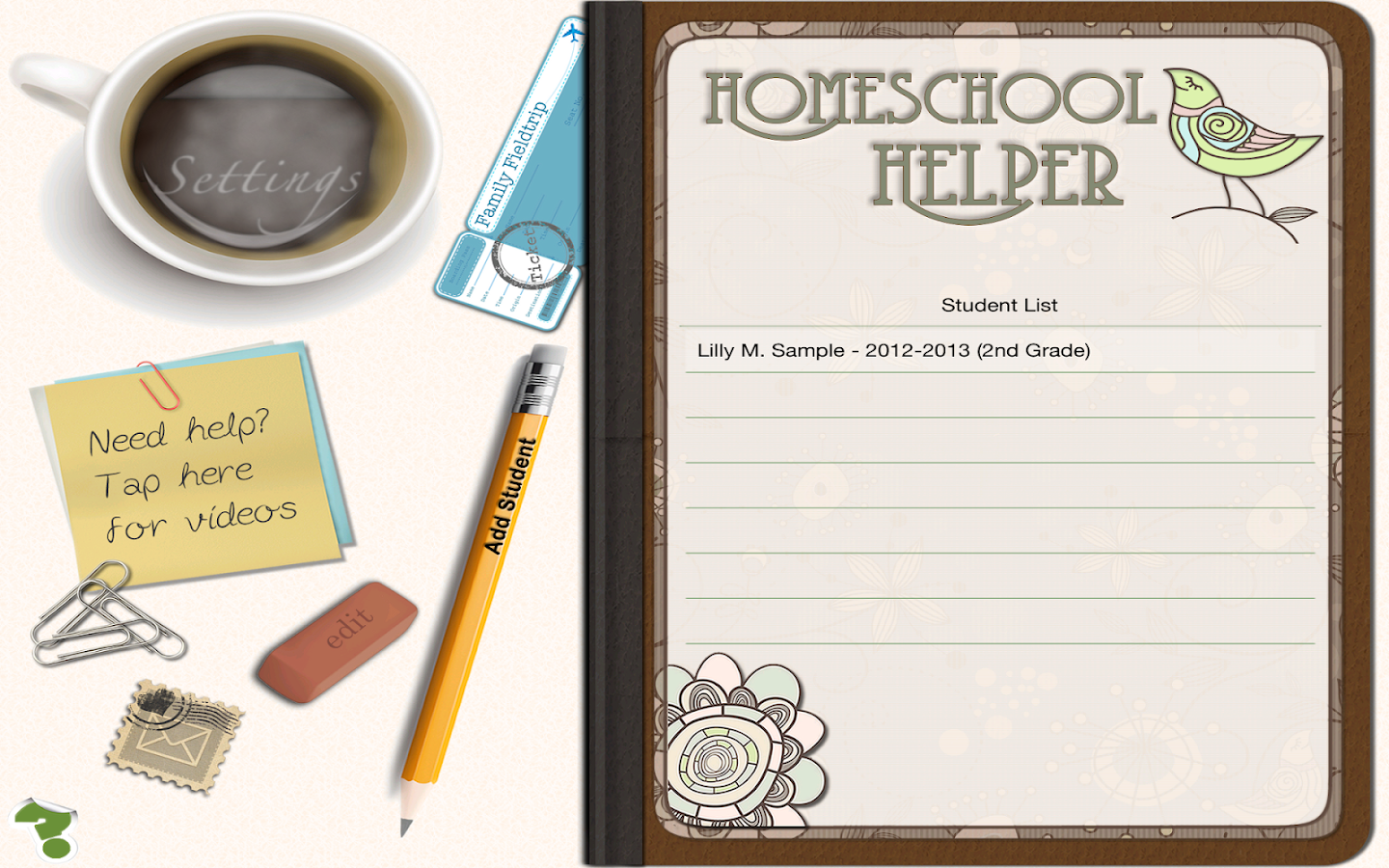Homeschool Helper is a feature rich app for the Apple iPad and Android Tablets. Now includes Lesson Planning features. Visit us at: HomeschoolHelperApp.com OR Homeschool Helper App on Facebook. ... View Video